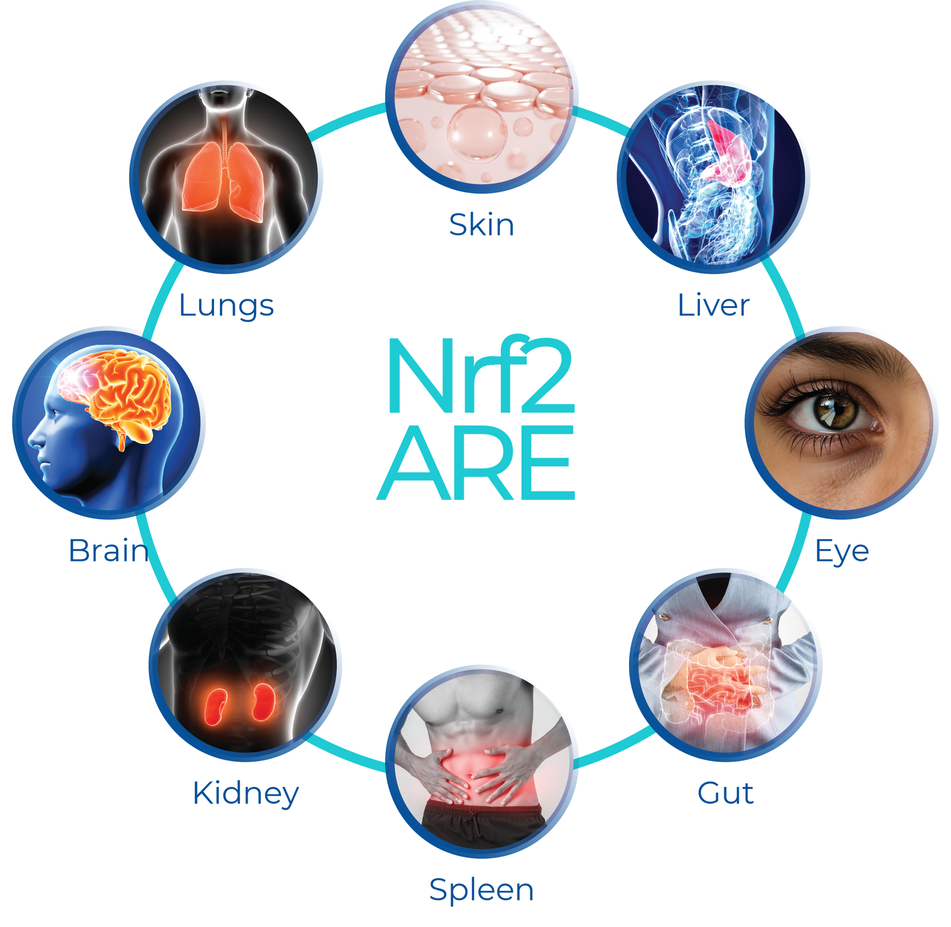 Nrf2 melindungi pelbagai jenis sel dengan meningkatkan detoksifikasi dan gen antioksidan yang didorong oleh ARE.